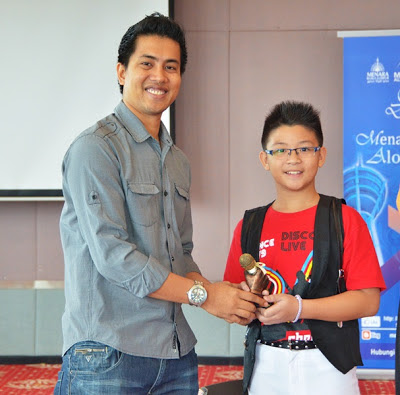 Hadiah kepada pemenang serta cenderahati kepada juri turut disampaikan oleh Penolong Pengurus Perhubungan Awam & Acara Menara Alor Setar, Encik Wan Saiful Anwar Wan Mohd Najib(kiri).